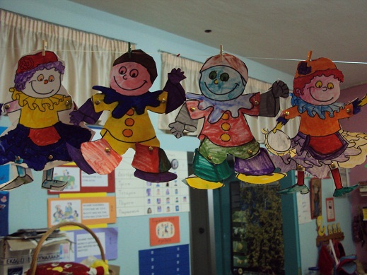 Σήμερα τα παιδιά το πρωί με την κ. Κασσιανή, μίλησαν για το καρναβάλι και πώς το γιορτάζουν σε διάφορα μέρη. Είδαν βίντεο με κουδουνάτους, με το καρναβάλι στη Βενετία, στο Ρίο και στην Κίνα. Εντόπισαν αυτά τα μέρη στην υδρόγειο σφαίρα και μετά ζωγράφισαν σε Α3, χωρισμένο στα τέσσερα, κάτι απ’ το κάθε καρναβάλι.