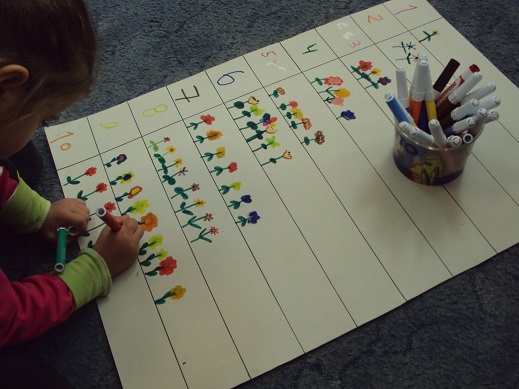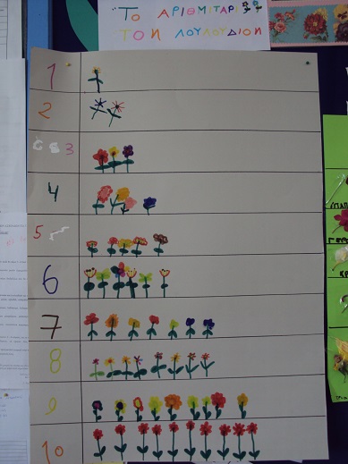 Αφού λοιπόν είχαν μπει σ’ αυτή τη διαδικασία, είπαμε σήμερα να φτιάξουμε “το αριθμητάρι των λουλουδιών”.