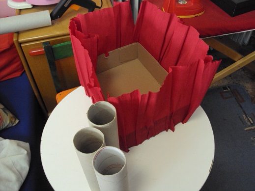 Χρησιμοποιήσαμε δύο καπάκια από κούτες Α4 και ρολά από χαρτιά κουζίνας και αλουμινόχαρτα.