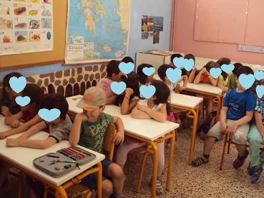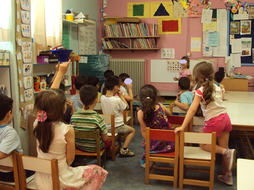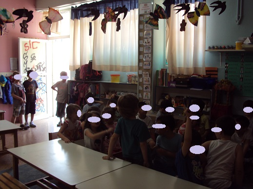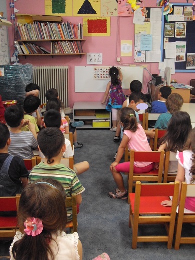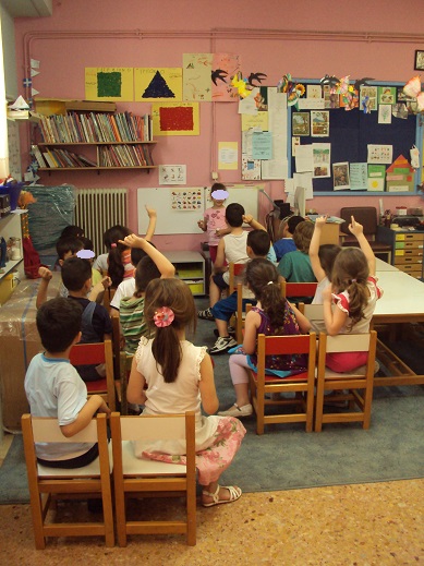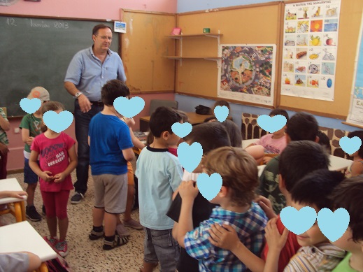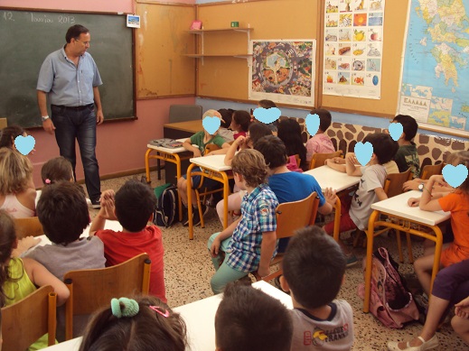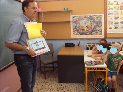 τους εξήγησε πώς γίνεται το μάθημα στην Α’, τους έδειξε τα βιβλία και τα τετράδια