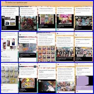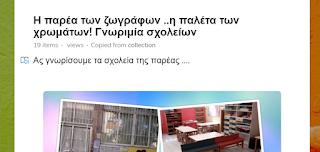 Την πορεία του έργου μας θα μπορείτε να βλέπετε στο παρόν ιστολόγιό μας, στις αναρτήσεις με την αντίστοιχη ετικέτα αλλά και στο ιστολόγιο το οποίο δημιουργήθηκε ειδικά για το πρόγραμμα, Η παρέα των ζωγράφων – Η παλέτα των χρωμάτων όπου και θα κάνουν αναρτήσεις όλοι οι εκπαιδευτικοί.