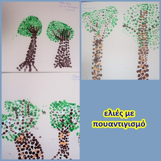 Φάγαμε λουκουμάδες για το καλό της σοδειάς και φτιάξαμε ελαιώνα με την τεχνική του πουαντιγισμού, μια και στο πρόγραμμά μας είναι ο μήνας του Seurat.