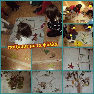 Τα παιδιά έφεραν φύλλα και έπαιξαν μ’ αυτά, τα ταξινόμησαν, έφτιαξαν πίνακες, τα έβαψαν, τα έκαναν καπέλο!