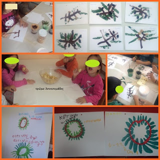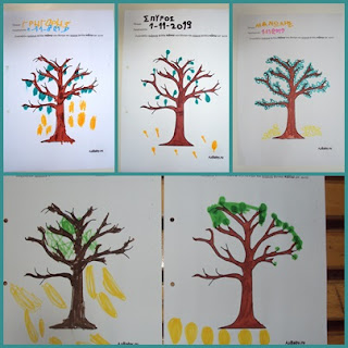 και φτιάξαμε κότινο και ελιά με τυπώματα φύλλων και φυστίκια