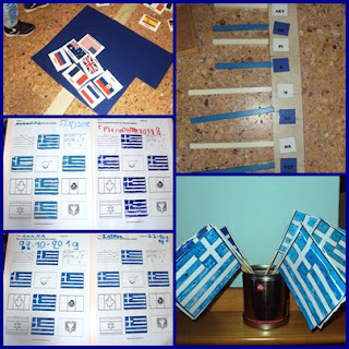 Μιλήσαμε για τη σημαία μας, τις σημαίες άλλων κρατών, τις ομαδοποιήσαμε, συμπληρώσαμε φύλλα εργασίας και φτιάξαμε και δική μας κατασκευή