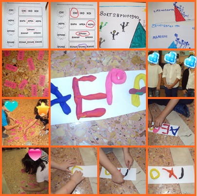 Μιλήσαμε για τα γεγονότα της εποχής αυτής και ζωγραφίσαμε. Μάθαμε και συνθέσαμε τις λέξεις ΑΕΡΑ & ΟΧΙ