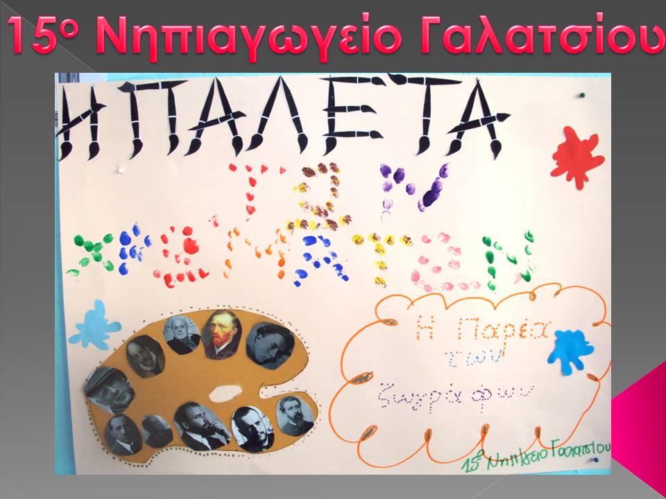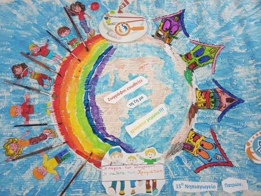 και από τα λογότυπα, του 15ου Νηπιαγωγείου Πατρών με το σύνθημα