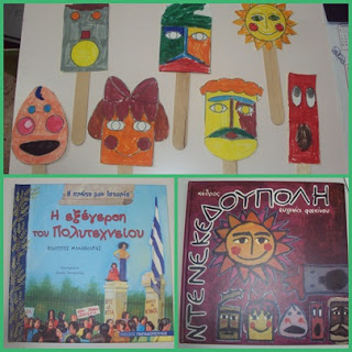Στη γιορτούλα μας, διαβάσαμε τη Ντενεκεδούπολη της Φακίνου και τη δραματοποιήσαμε με “κούκλες”
