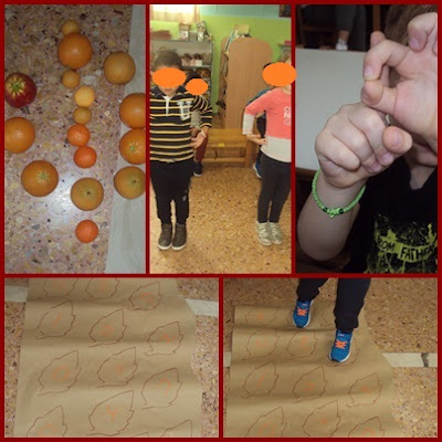 Μια και ο καιρός άρχισε να θυμίζει φθινόπωρο σχηματίσαμε το Φ, με το σώμα μας, με τα χέρια μας και με φρούτα. Περπατήσαμε σε φύλλα με τα γράμματα της λέξης.