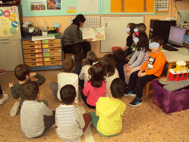 Τα παιδιά θέλησαν να τους διαβάσουν και μια ιστορία οι φοιτήτριες που έρχονται στην τάξη μας και εκείνες δε τους χάλασαν χατίρι.