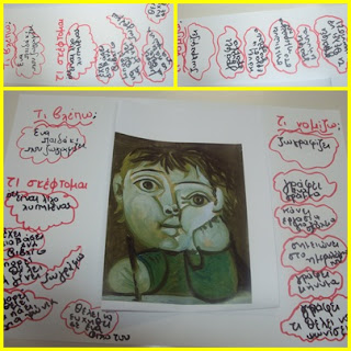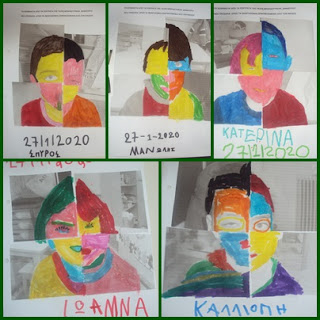 Φωτογραφηθήκαμε, κόψαμε τις φωτογραφίες στη μέση και ζωγραφίσαμε το υπόλοιπο του προσώπου μας, περίεργα, όπως ο Πικάσο