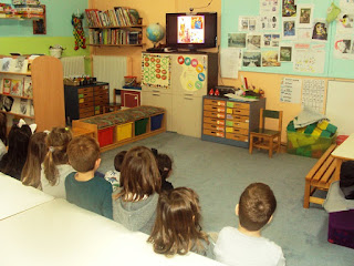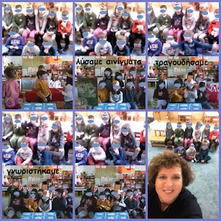 Επίσης επικοινωνήσαμε και με το 8ο Νηπιαγωγείο Νεάπολης και γνωριστήκαμε, τραγουδήσαμε και λύσαμε αινίγματα που είχαν ετοιμάσει για τους πίνακες του ζωγράφου.