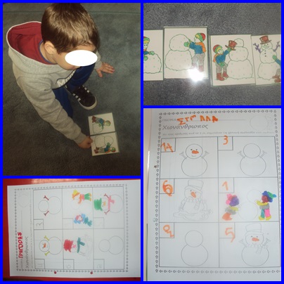 Φτιάξαμε τη διαδοχή κατασκευής χιονάνθρωπου με εικόνες και σε φύλλο εργασίας.