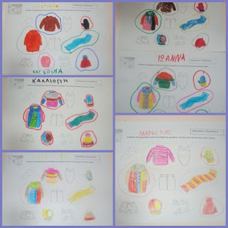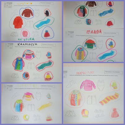 Ταξινομήσαμε ρούχα ανάλογα με την εποχή, χειμωνιάτικα, σε καρτέλες, με το beebot και σε φύλλο εργασίας