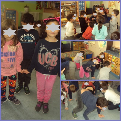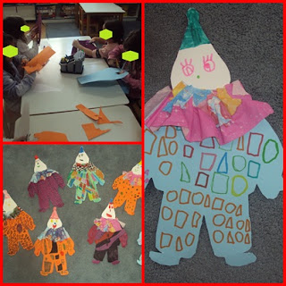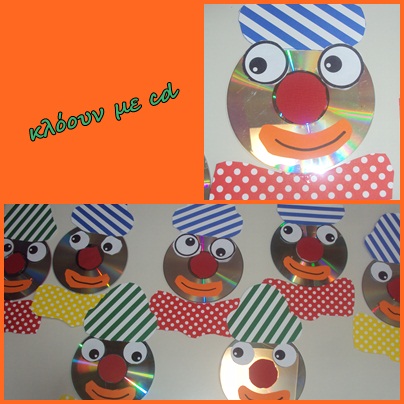 Παίξαμε το παιχνίδι “φτιάχνω τον κλόουν”. Το κάθε παιδί παίρνει μια κάρτα και λέει τι έχει και τι χρειάζεται ώστε να σηκωθεί ο επόμενος μέχρι να σχηματιστεί με τη σειρά ο κλόουν