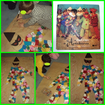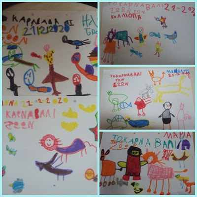 Το περισσότερο διάστημα ασχοληθήκαμε, φυσικά, με τις Απόκριες. Μιλήσαμε για τις Απόκριες, τα έθιμα, τα καρναβάλια, τις βδομάδες του Τριωδίου και πώς λένε την κάθε μια, το γαϊτανάκι και πολλά άλλα. Ζωγραφίζουμε το καρναβάλι.