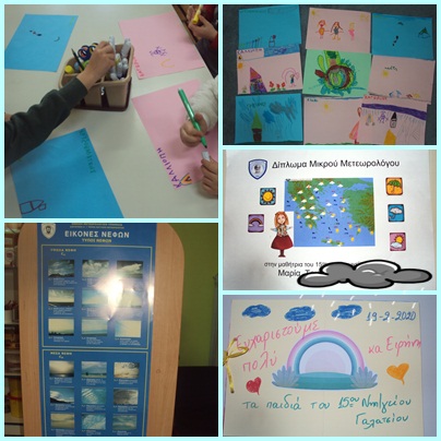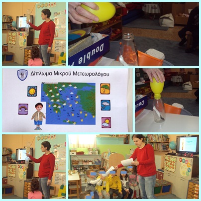 Ήρθε λοιπόν στο σχολείο μας και μας ενημέρωσε με απλό τρόπο για τη Μετεωρολογία, τα σύννεφα, τους ανέμους, την ατμοσφαιρική πίεση κάνοντας παράλληλα πολλά πειράματα για να καταλάβουμε καλύτερα αυτά που μας παρουσίαζε. Στο τέλος φτιάξαμε το δικό μας ανεμόμετρο με υλικά που μας έφερε.