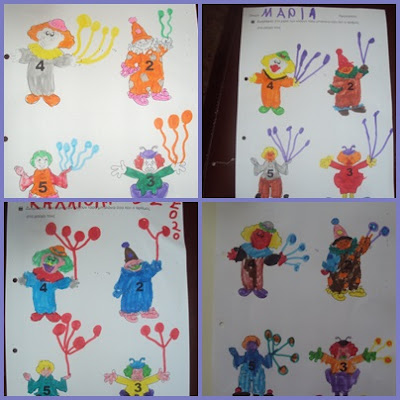 Συμπληρώσαμε φύλλο εργασίας με μπαλόνια στο χέρι του κλόουν ανάλογα με τον αριθμό που έγραφε στο ρούχο του