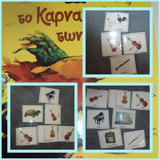 Διαβάσαμε το καρναβάλι των ζώων και κάναμε πολλές δραστηριότητες πάνω σ’ αυτό. Εικόνες στη σειρά, ομαδοποιήσεις, ζωγραφική, δραματοποίηση