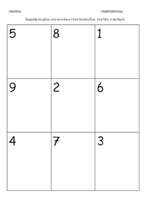 Προσπαθήσαμε να συμπηρώσουμε ένα φύλλο εργασίας με αριθμούς και λουλούδια, το οποίο μπορείτε να το συμπληρώσετε στο σπίτι, τώρα.