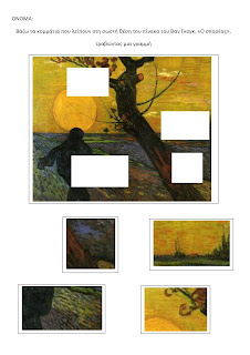 Κλείνοντας λοιπόν, ανεβάσαμε σχετικά φύλλα εργασίας για το τι χρειάζεται ένα φυτό και να συμπληρώσουν τον πίνακα του Van Gogh , ο σπορέας με τα κομμάτια που λείπουν. Επίσης να αντιστοιχήσουν σποράκια με γλάστρες και να βρουν πόσα σποράκια περισσεύουν και να ζωγραφίσουν τον δικό τους “σπορέα”.