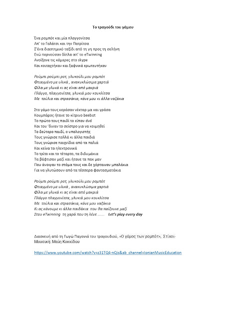 Η συνάδελφος διασκεύασε και το τραγούδι, ο γάμος των ρομπότ και φτιάξαμε το τραγούδι του γάμου, το οποίο τραγουδήσαμε όλοι μαζί.