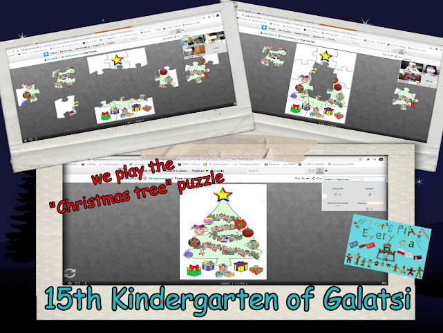 Συνεχίζοντας την προηγούμενη ανάρτησή μας αφού διασκεδάσαμε με τον τροχό μας, ετοιμάστηκε κατόπιν και το παζλ που δημιουργήθηκε από τα υπόλοιπα σχολεία που ζωγράφισαν στολίδια και δωράκια. Το συνεργατικό μας λοιπόν δέντρο έγινε παζλ και παίξαμε στην “τάξη” μας εξ αποστάσεως.