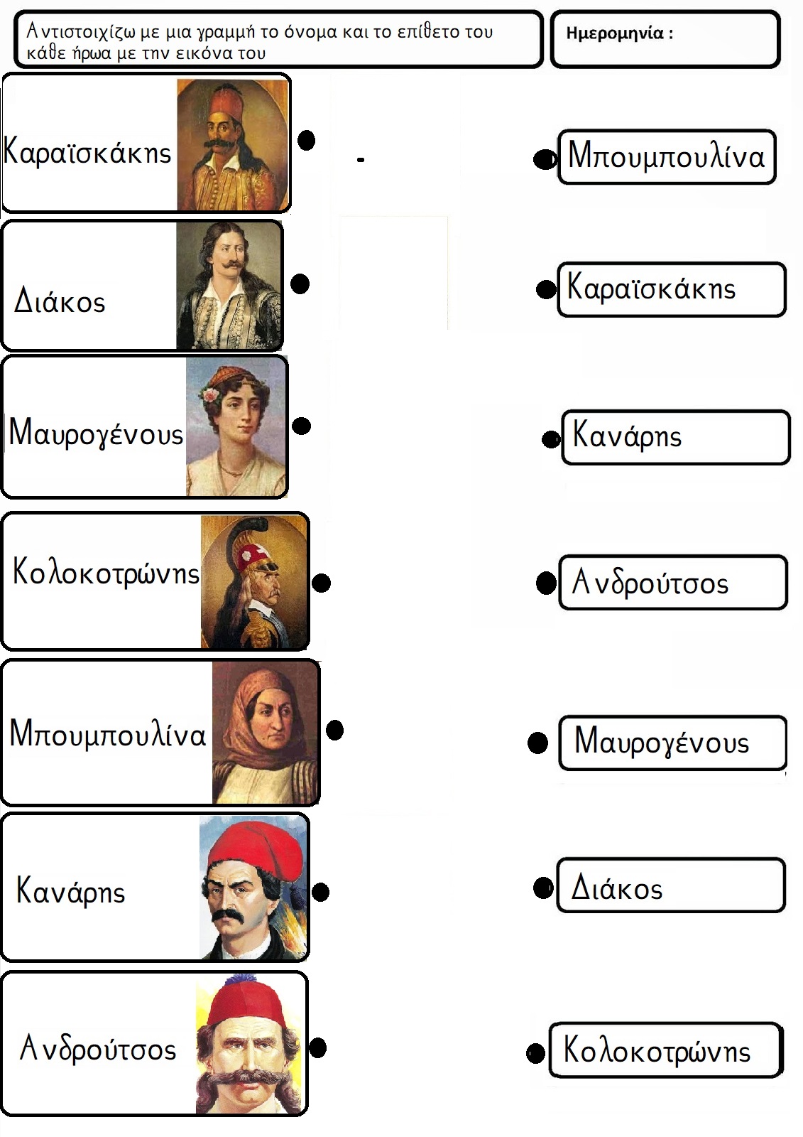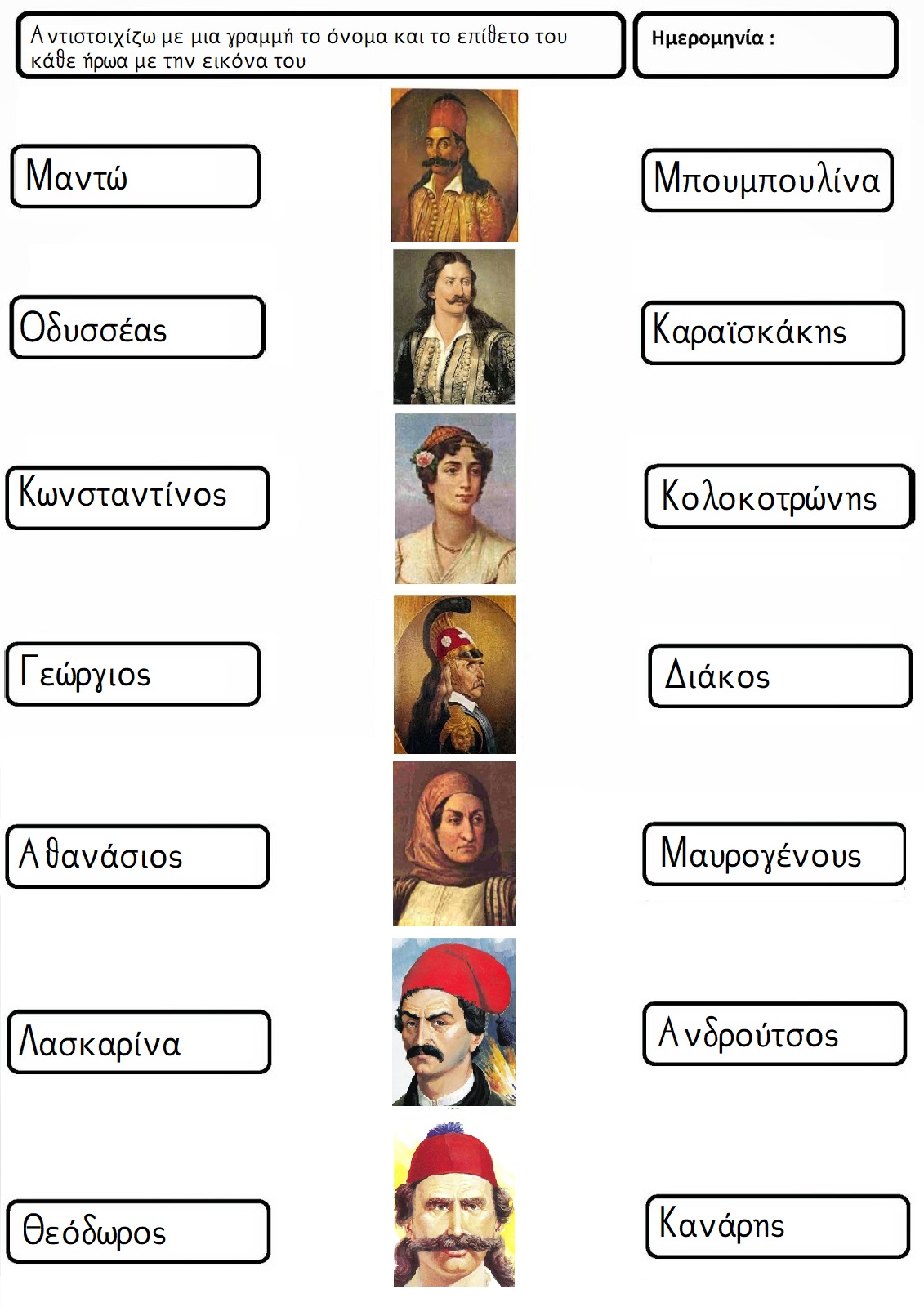 Αντιστοίχιση ονόματος και επιθέτου με τους ήρωες: