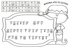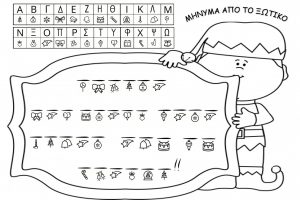 Ένα πολύ ωραίο φύλλο εργασίας, για να γράψουν τα παιδιά τα γράμματα και να αντιστοιχίσουν και τους αριμούς ή εικόνες είναι η αποκωδικοποίηση μηνυμάτων. Παρακάτω μπορούν τα παιδιά να αποκωδικοποιήσουν το μήνυμα των Χριστουγέννων.