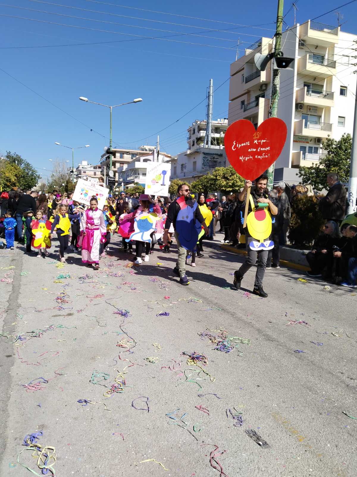 Αφού ετοιμάσαν τις στολές μαζί με το Σύλλογο Γονέων του συστεγαζόμενου 15ου Δημοτικού Σχολείου Ηλιούπολης παρέλασαν με σφυρίχτρες και πλακάτ και φυσικά πολύ κέφι και χαρά.