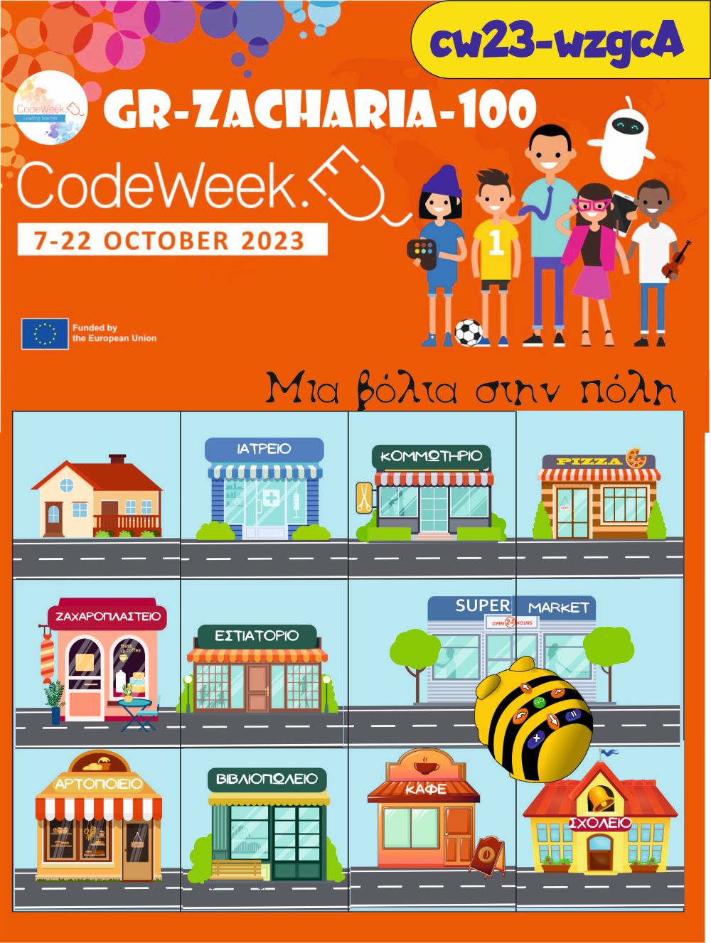 Φέτος συμμετέχουμε στην Εβδομάδα Προγραμματισμού EUCodeWeek 2023 με τη δραστηριότητα της Συμμαχίας που έχει τίτλο “Μια βόλτα στην πόλη μου” και ουσιαστικά πρόκειται για ένα επιδαπέδιο παιχνίδι με το Beebot.