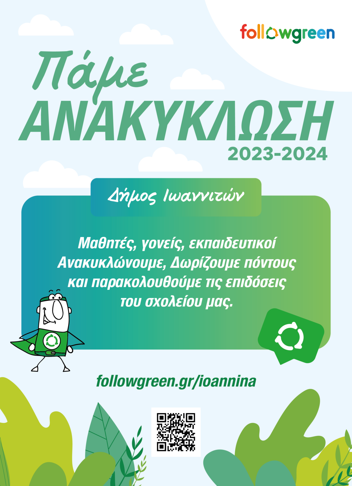 Από σήμερα μπορείτε να επισκέπτεστε την πλατφόρμα https://followgreen.gr/ioannina/contest να κάνετε την εγγραφή σας και να δωρίσετε πόντους στο σχολείο μας!
