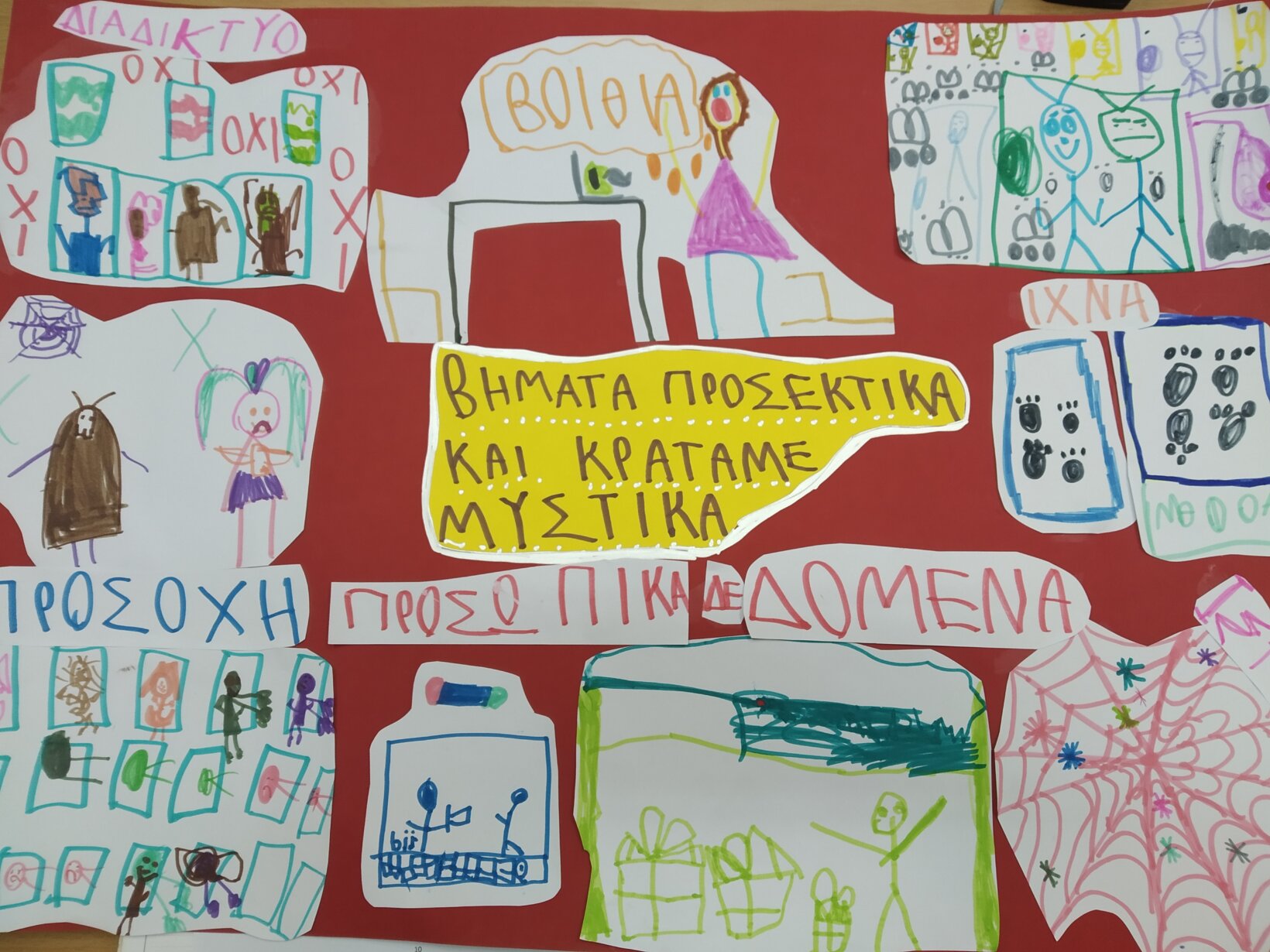 Χρησιμοποιώντας αυτό το υλικό και προσεγγίζοντας έννοιες όπως: διαδίκτυο, ιστός, προσωπικά δεδομένα, ψηφιακά ίχνη δημιουργήσαμε τη δική μας αφίσα για την ασφαλή πλοήγηση στο διαδίκτυο.