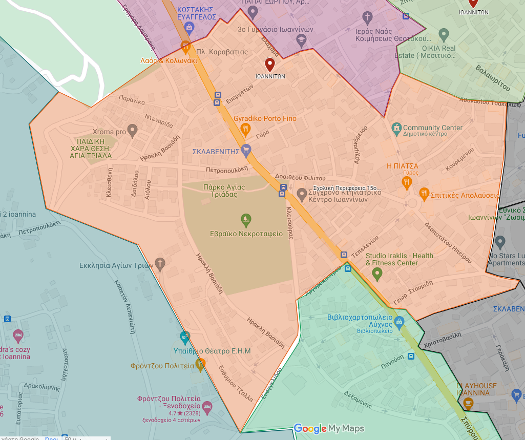 - Όρια σχολικής περιφέρειας του 15ου Νηπιαγωγείου Ιωαννίνων