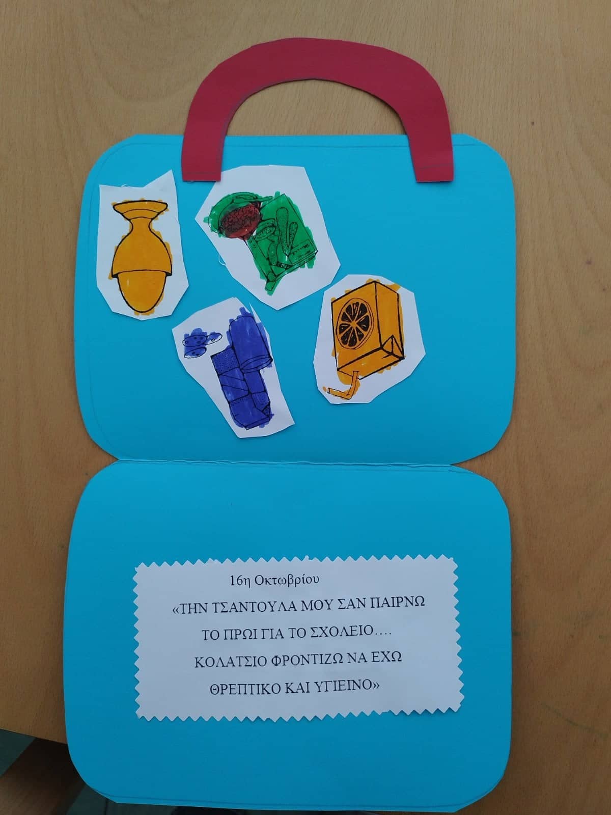 Με αφορμή την Παγκόσμια Ημέρα Διατροφής , συζητήσαμε για την υγιεινή διατροφή και φτιάξαμε μια υγιεινή φθινοπωρινή φρουτοσαλάτα. Παρακολουθήσαμε το παραμύθι “Θυμωμένα λαχανικά” , ταξινομήσαμε τα λαχανικά και τα φρούτα και φυσικά κατασκευάσαμε το δικό μας δοχείο φαγητού με τις τροφές που μας κάνουν καλό!