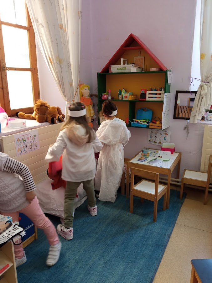 Ιατρείο και Φαρμακείο. Αγαπημένες γωνιές των παιδιών στις οποίες υποδύονται διάφορους ρόλους αλλά και γωνίες που δίνει την δυνατότητα για γραφή και ανάγνωση. Δύο κέντρα ενδιαφέροντος που μπορούν να λειτουργούν παράλληλα.
