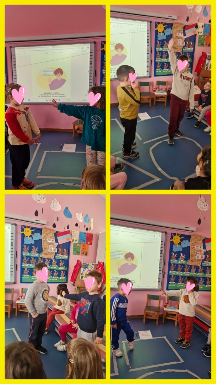 Στην συνέχεια, έμαθαν να προστατεύουν τον εαυτό τους από συμπεριφορές που τους πληγώνουν. Ήρθε στην τάξη μας μία κούκλα η Ίγκορ και ζήτησε από τα παιδιά την βοήθεια τους. Πως θα απαλλαγεί από τις κοροϊδίες των συμμαθητών της. Τα παιδιά είπαν αρκετές ιδέες, έκαναν αναπαράσταση πως πρέπει να αντιδρούν και έμαθαν τα βήματα που πρέπει να ακολουθήσουν.
