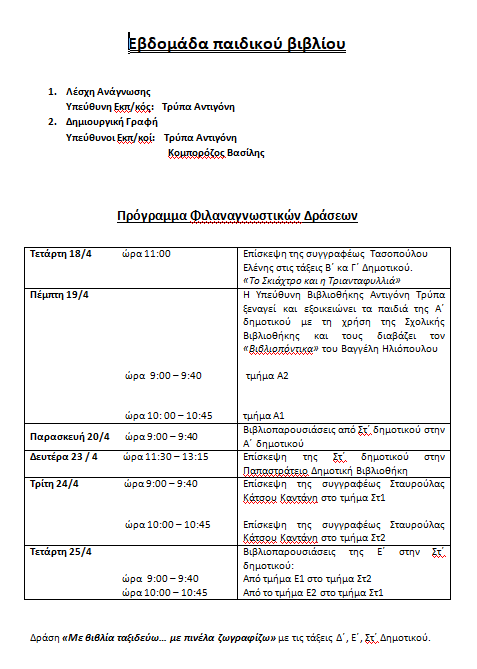 Εβδομάδα Παιδικού Βιβλίου Εμείς εδώ στο 16ο Δημοτικό Σχολείο Αγρινίου … διαβάζουμε! Η εβδομάδα από σήμερα 18/4 έως τις 25/4 είναι αφιερωμένη στο παιδικό βιβλίο με τη συμμετοχή όλων των μαθητών του σχολείου. 16ο ΔΗΜΟΤΙΚΟ ΣΧΟΛΕΙΟ ΑΓΡΙΝΙΟΥΓενικά | 18 Απρ 2018