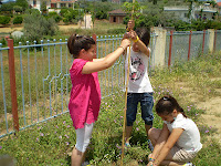 Τα παιδιά, τη σημερινή ημέρα, φρόντισαν, συμβολικά, τα νέα δεντράκια που φυτέψαμε στο προαύλιο του Σχολείου μας.