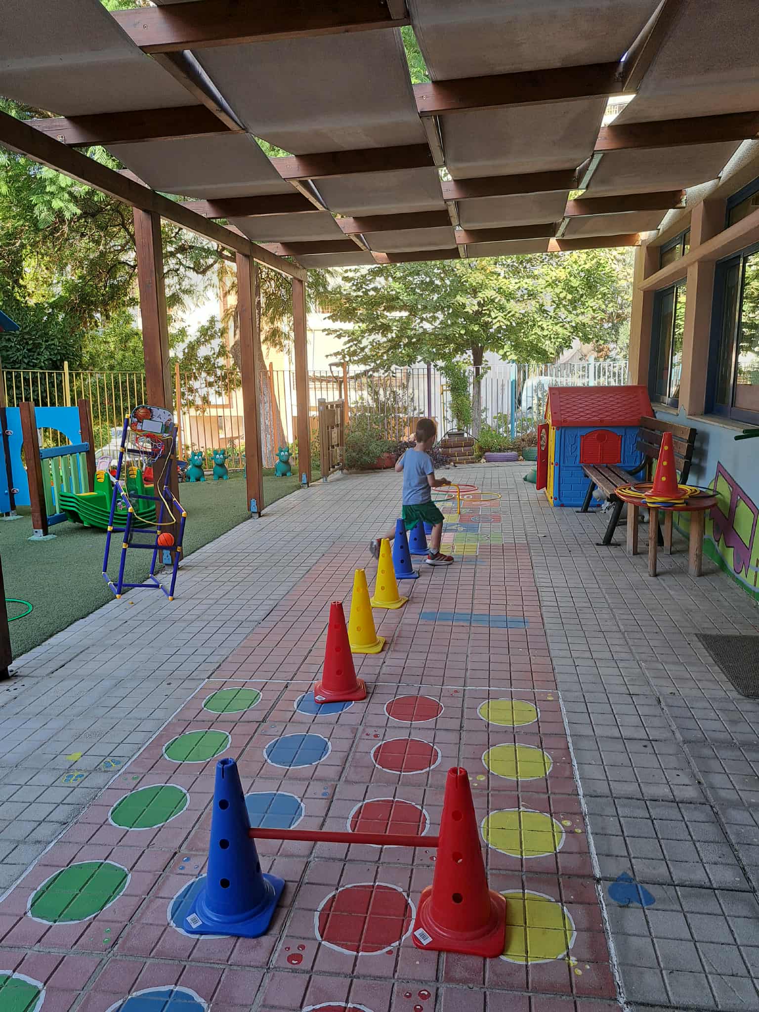Μιλήσαμε για τη μέλισσα, τα προϊόντα της και τα παιδιά κατασκεύασαν καδράκια με τύπωμα τέμπερας χρησιμοποιώντας οικιακά ρολά χαρτιού, ψαλίδι, χαρτί κάνσον και φωτοτυπίας. Στο σώμα της μέλισσας σχημάτισαν ευθείες, οριζόντιες μαύρες γραμμές και έμαθαν να γράφουν το κεφαλαίο γράμμα Ζ από το ζουζούνισμα της μέλισσας. Η κατασκευή έδωσε τη δυνατότητα στα παιδιά να χρησιμοποιήσουν δημιουργικές τεχνικές εικαστικών και γραφής: