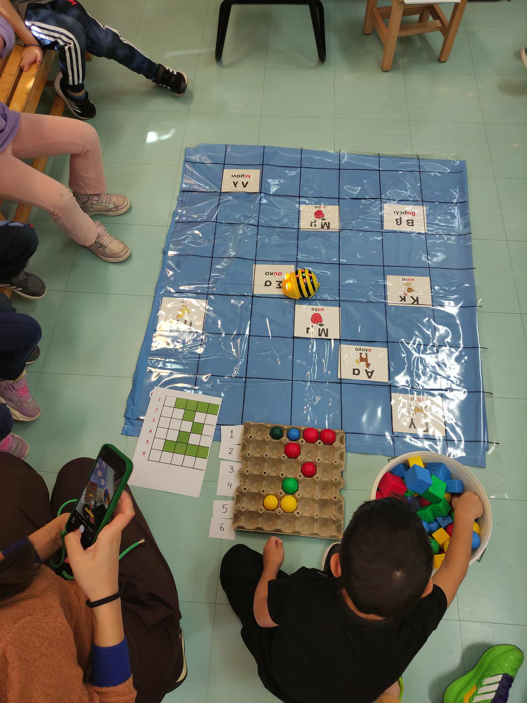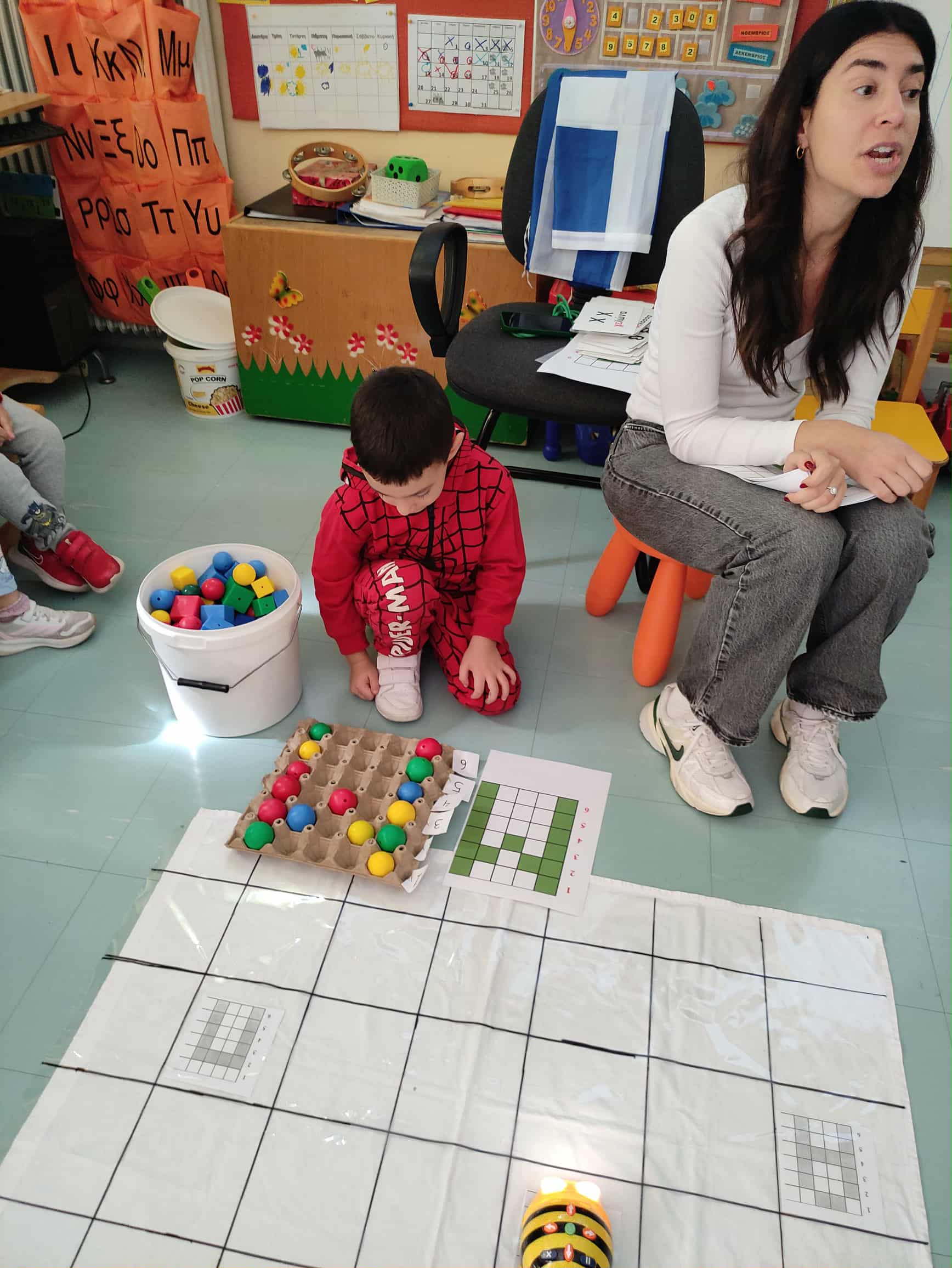 Παίξαμε διασκεδαστικά παιχνίδια μαθηματικών, με μυγοσκοτώστρες και καρτέλες με αριθμούς και έντομα. Τα παιδιά αναγνώριζαν την καρτέλα του αριθμού που η εκπαιδευτικός παρουσίαζε και καλούνταν με ταχύτητα και ακρίβεια να χτυπήσουν την καρτέλα με τον αντίστοιχο αριθμό. Γέλασαν και έμαθαν με διασκεδαστικό τρόπο νέους αριθμούς !!!