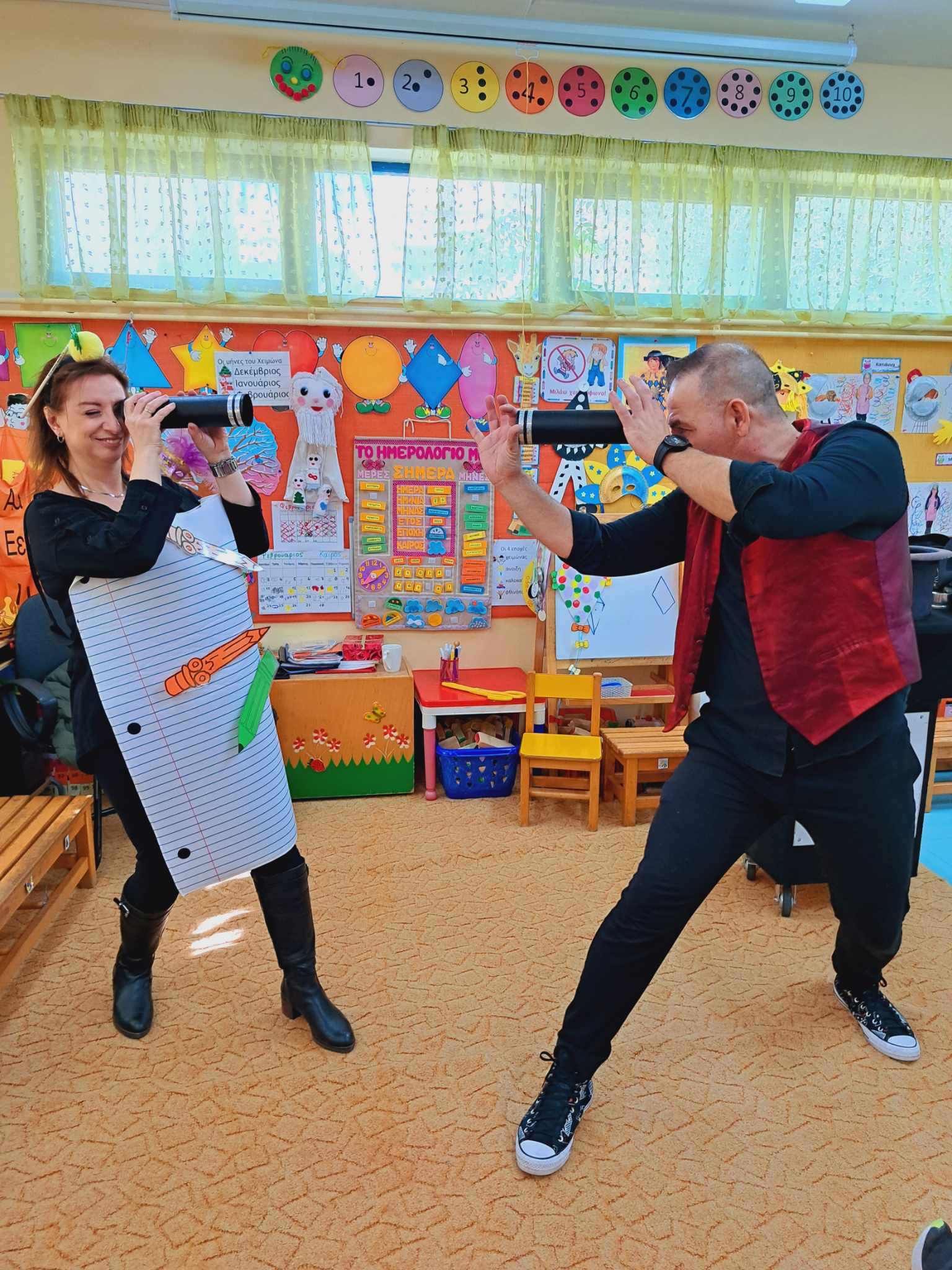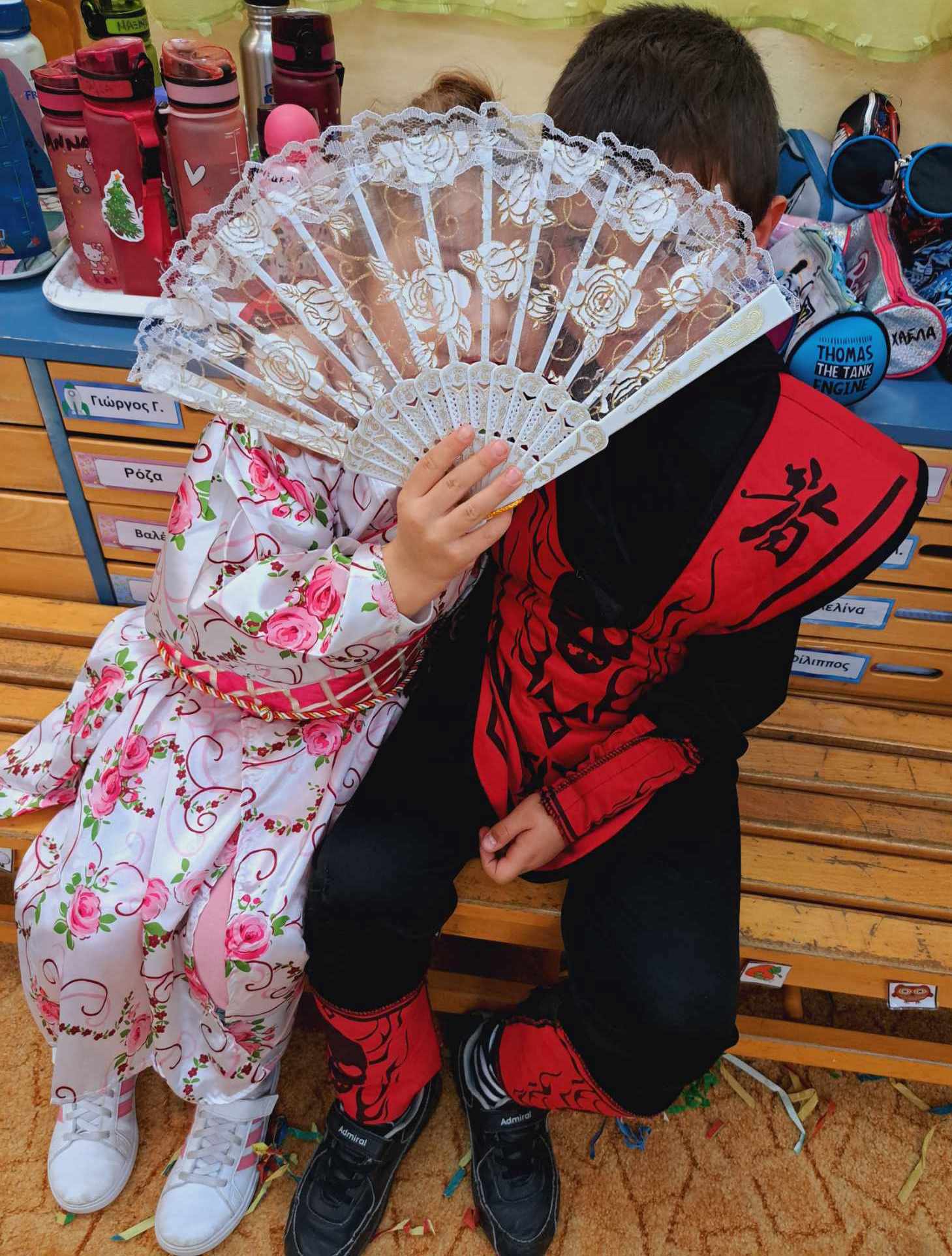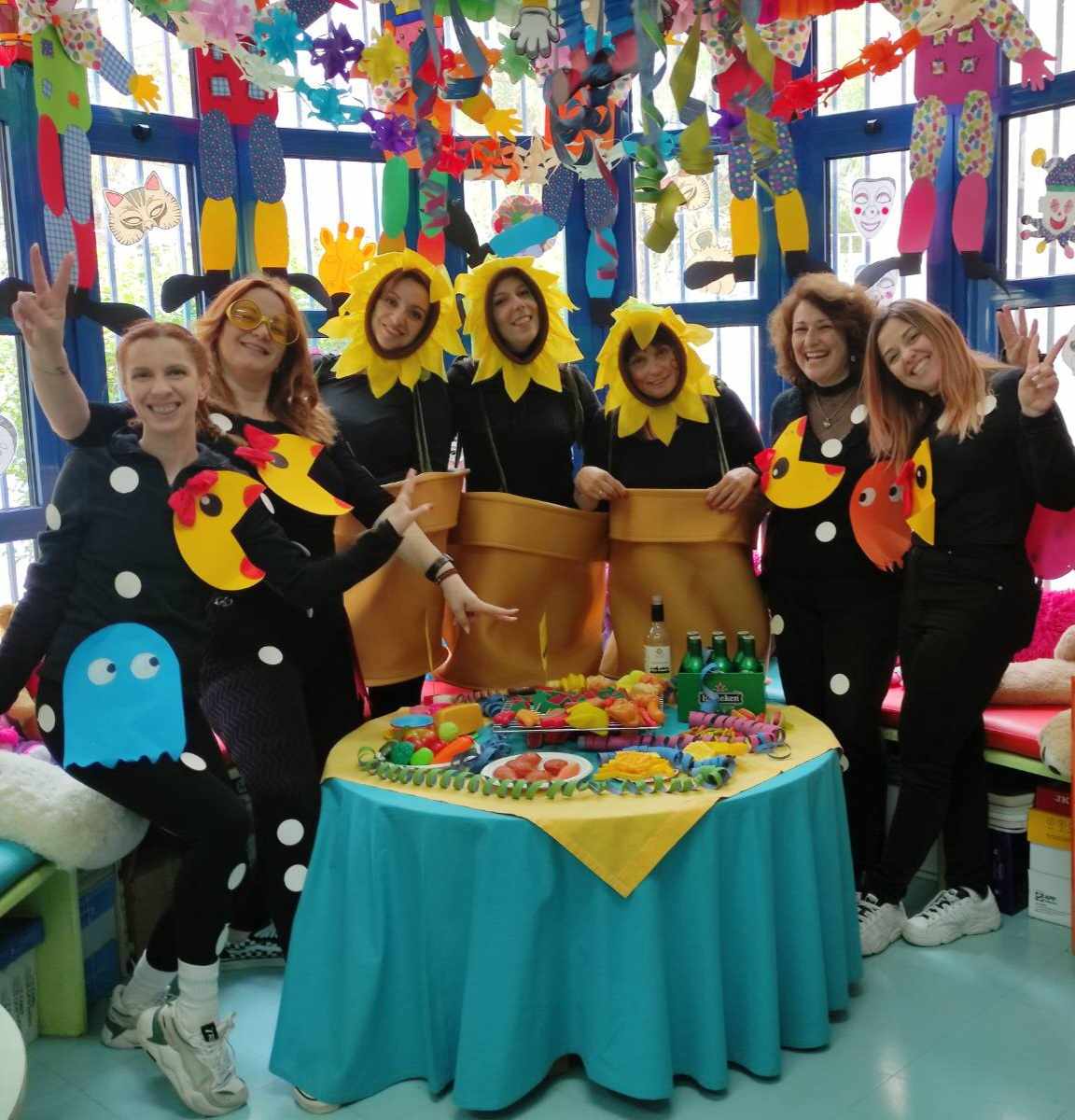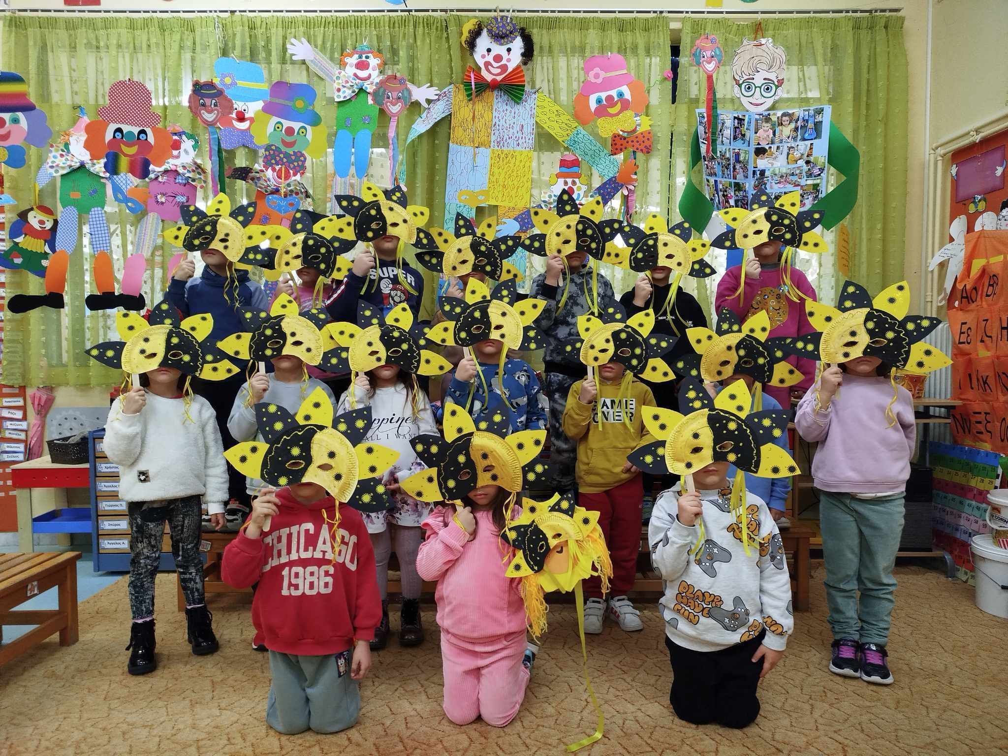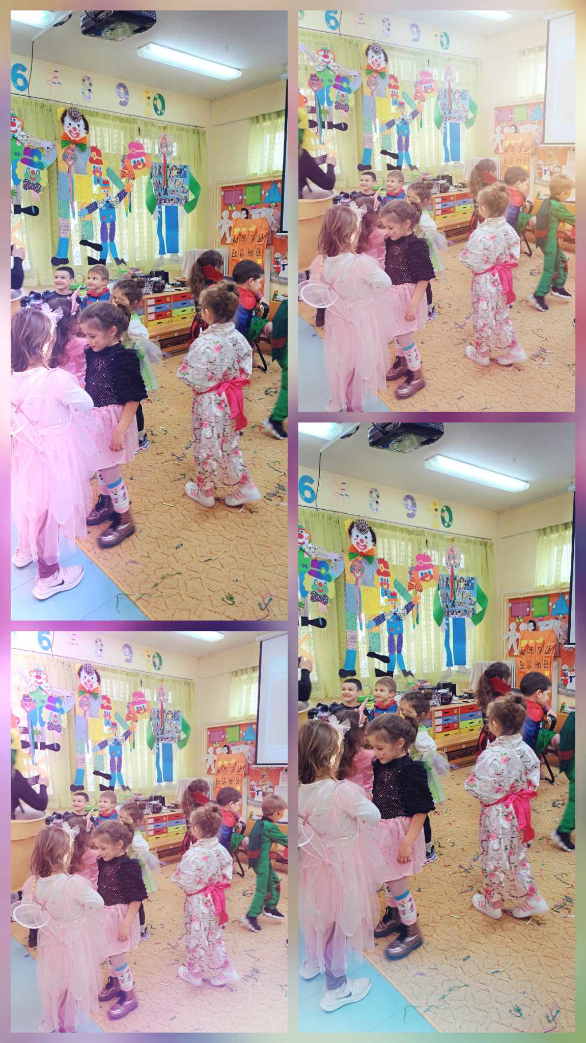 Και οι δραστηριότητες μας δεν σταματούν εδώ …Το αγαπημένο βιβλίο της Ζωρζ Σαρή «Ο Αρλεκίνος »έγινε αφορμή και για μερικές ακόμα ευφάνταστες δημιουργίες ,αλλά και φυσικά το σύνθημα : ” Ζήτω οι Απόκριες. Ζήτω η τρέλα. Τούτο μόνο. Ας το μάθουνε πολλοί. Μια φορά μόνο το χρόνο πρέπει να ‘ μεθα τρελοί”
