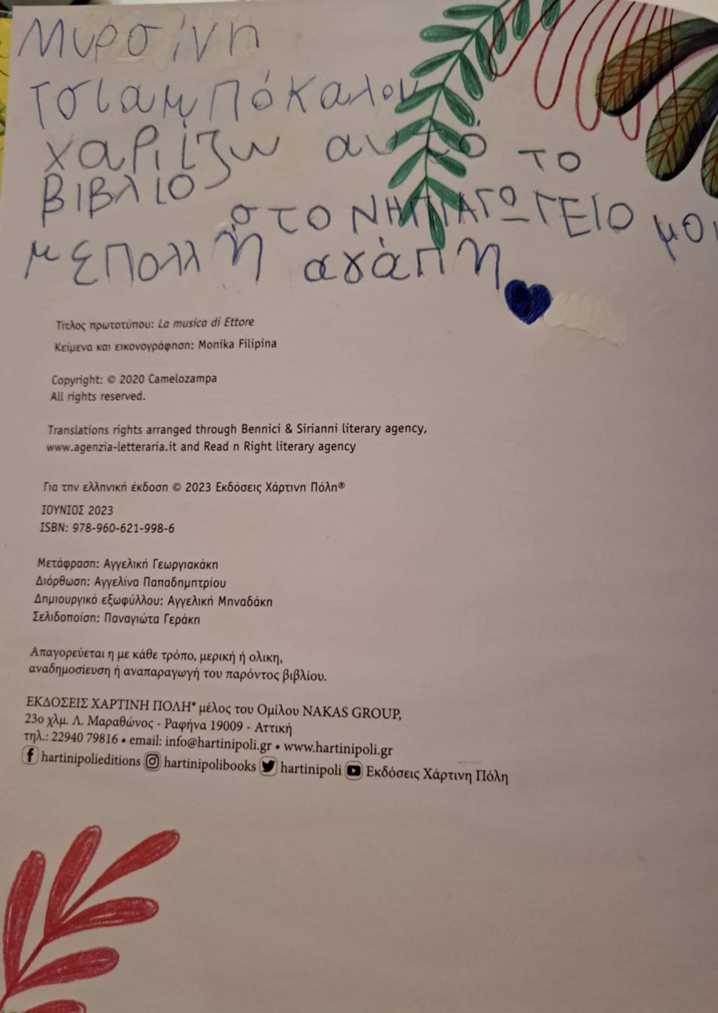 57. Την οικογένεια της Βαλέριας Σιαπάτη για την δωρεά του βιβλίου «Το μαγικό μολύβι της Μαλάλα» και την υπέροχη αφιέρωση της μικρής μας Βαλέριας στο εσώφυλλό του .