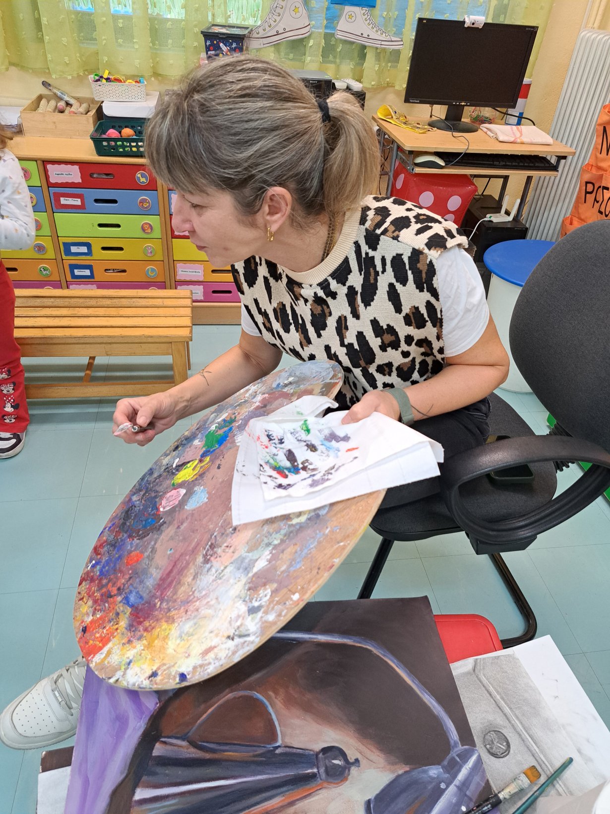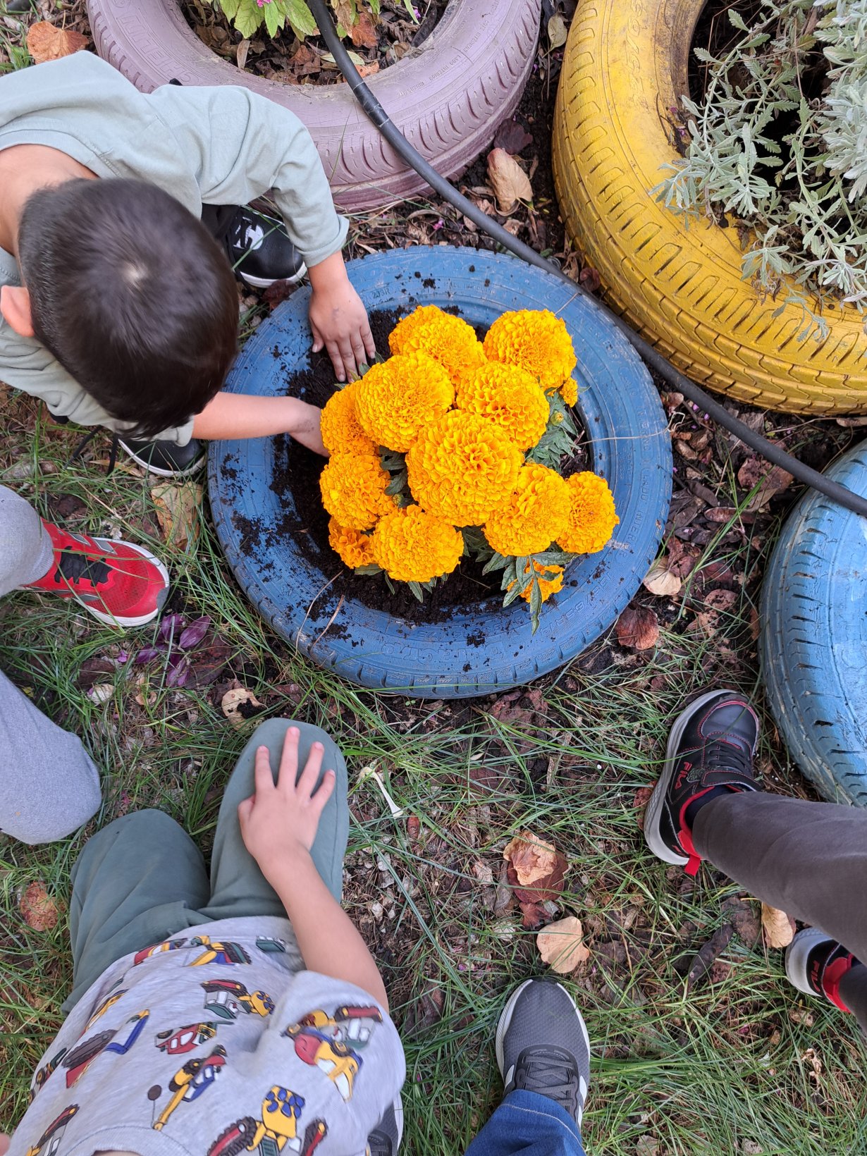 Το πρωί της Τετάρτης υποδεχτήκαμε με περίσσια χαρά και ανυπομονησία τους νέους μας φίλους ,την Ζεϊνέπ, τον Νικηφόρο και την Αριστέα ,συνοδευόμενοι από τις δασκάλες τους .Η μέρα κύλησε εξαιρετικά με την Ζεϊνέπ να μας διαβάζει βιβλίο και να κλέβει τις εντυπώσεις, τον Νικηφόρο με τα παιχνίδια με τα αμάξια, και την Αριστέα με τα γέλια της …Βάψαμε όλοι μαζί τα αυγά μας με μαρκαδόρους και φίλτρα καφέ και γεμίσαμε τα πασχαλινά μας καλάθια με καλούδια και τα προσφέραμε στους νέους μας φίλους …