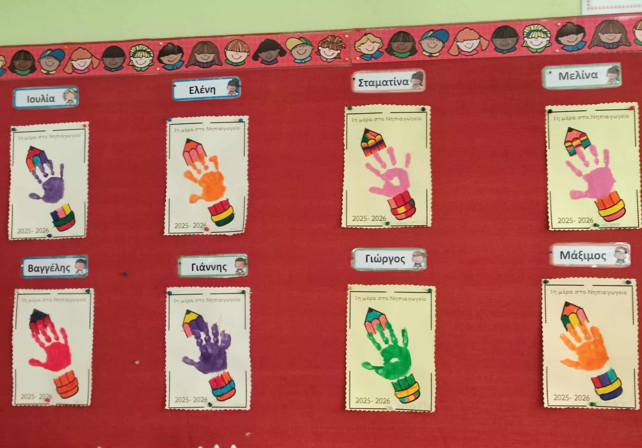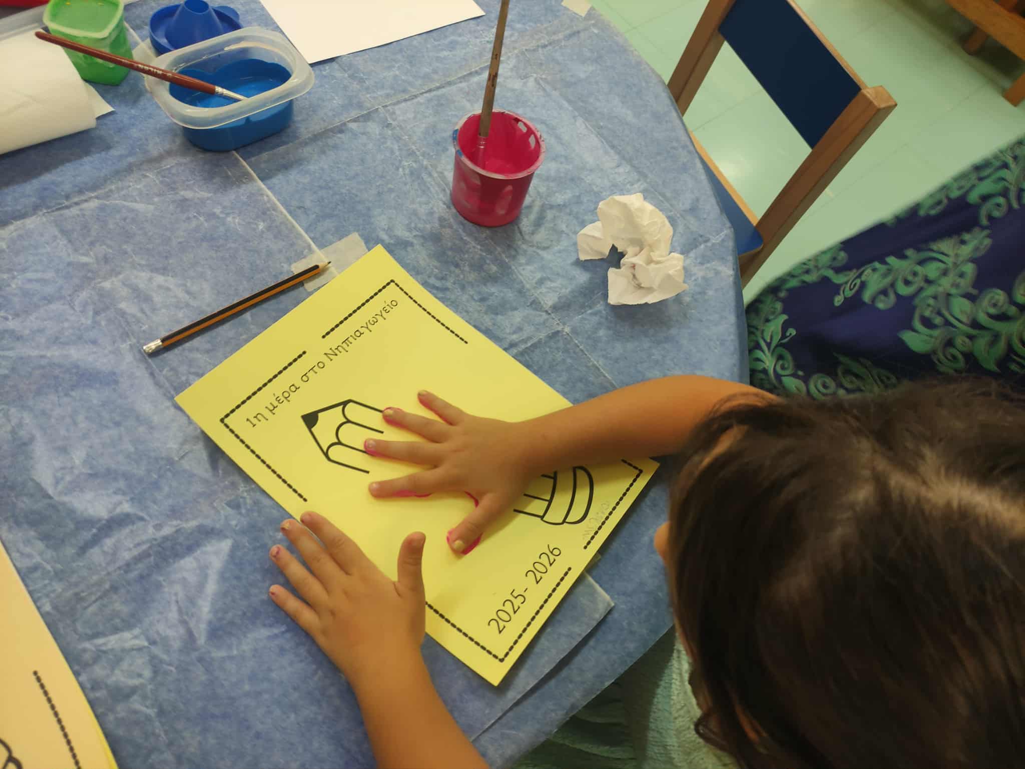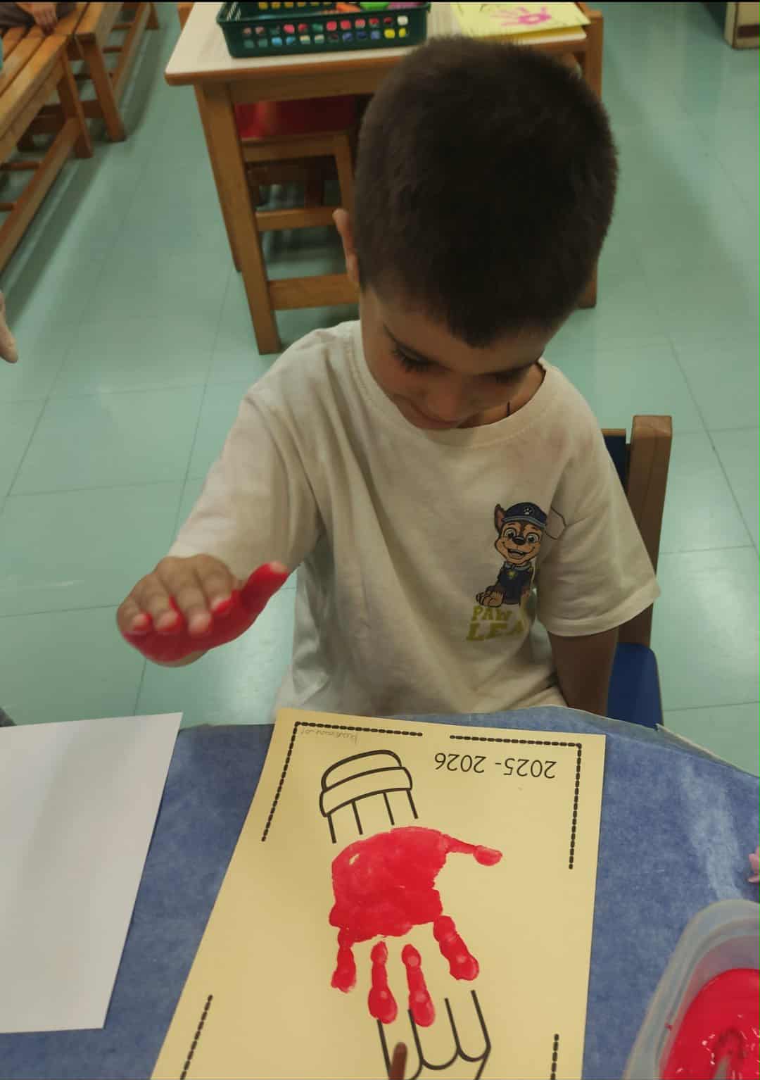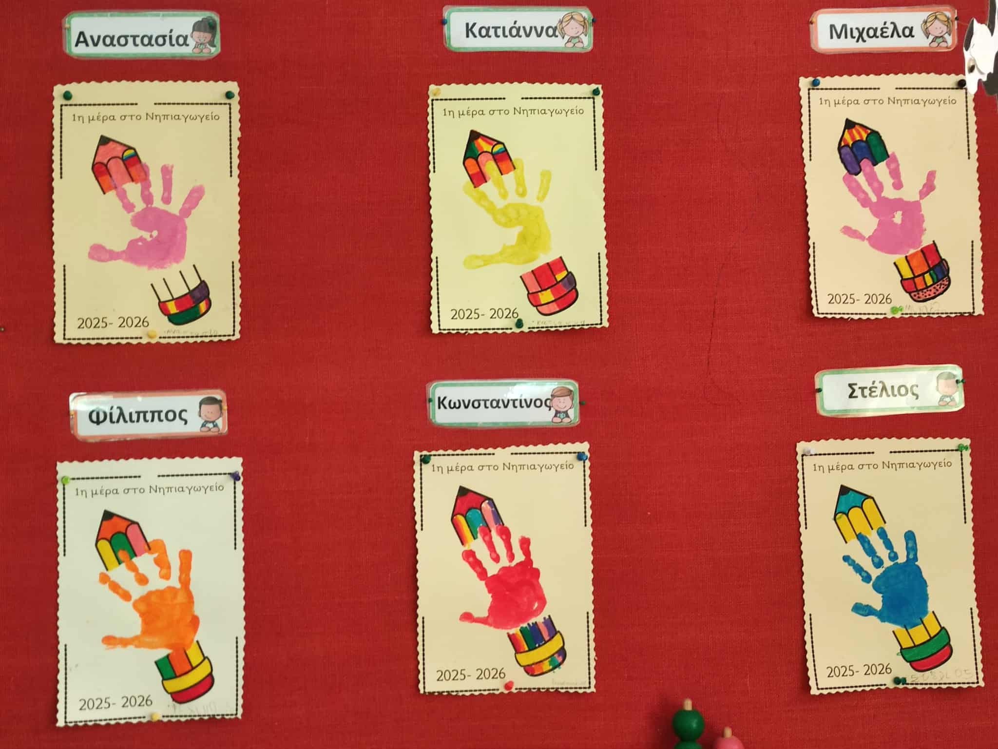 Οι πρώτες μέρες στο νηπιαγωγείο εστιάζουν στην προσαρμογή των παιδιών μέσα από παιχνίδια, τραγούδια και δραστηριότητες γνωριμίας, ενώ η συνεργασία γονέων-νηπιαγωγού είναι κλειδί για μια ομαλή μετάβαση. Οι στόχοι των πρώτων ημερών είναι κυρίως : Προσαρμογή: Η κύρια εστίαση είναι η ομαλή ένταξη των παιδιών στον νέο χώρο. Κοινωνικοποίηση: Μέσα από παιχνίδια γνωριμίας, τα παιδιά μαθαίνουν να αλληλεπιδρούν και να αναπτύσσουν την αυτοεκτίμησή τους. Εισαγωγή στην ρουτίνα: Τα παιδιά γνωρίζουν τους κανόνες, τα τραγούδια, και τη σειρά για δραστηριότητες όπως η τουαλέτα. Μην νομίζετε ότι είναι εύκολο όμως είμαστε όλοι εδώ να βοηθήσουμε τα παιδιά να έχουν μια ομαλή μετάβαση στο νέο εκπαιδευτικό ίδρυμα που θα τα φιλοξενήσει για τα επόμενα δύο χρόνια. Παίξαμε παιχνίδια γνωριμίας, τραγουδήσαμε, οργανώσαμε τις γωνιές στις τάξεις μας, ξεναγηθήκαμε στους χώρους του νηπιαγωγείου, εξερευνήσαμε την αυλή και τα παιχνίδια, συμφωνήσαμε τους κανόνες που θα πρέπει να ακολουθούμε και φυσικά φτιάξαμε και την πρώτη εργασία μας αφήνοντας το αποτύπωμά μας..Με το αγαπημένο χρώμα φτιάξαμε την πρώτη εργασία με τέμπερα και διακοσμήσαμε με μαρκαδόρους. Η παλάμη άφησε το αποτύπωμα στο χαρτί, με την επιθυμία τα μαγικά χεράκια να δημιουργήσουν έργα τέχνης τη σχολική χρονιά στο Νηπιαγωγείο !!!Φτιάξαμε καπέλα για να φωτογραφηθούμε σαν επίδοξα μοντέλα ,παίξαμε κουκλοθέατρο και δώσαμε υπόσχεση ότι κάθε πρωί θα ερχόμαστε με χαρά και χαμόγελο στο σχολείο μας.