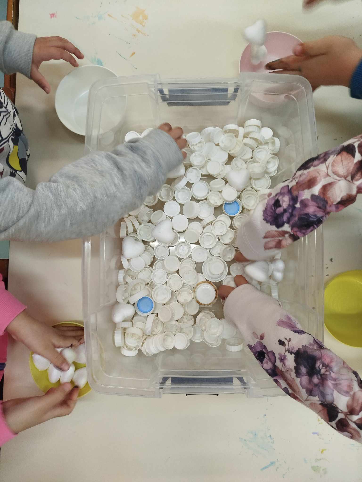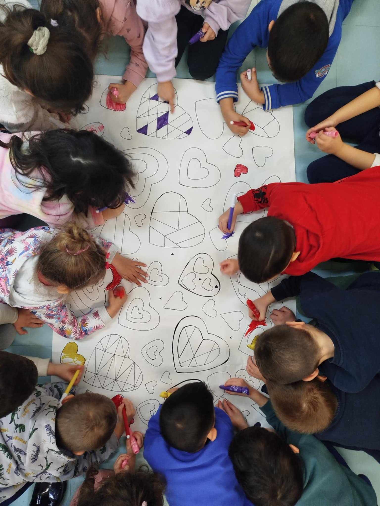Όλοι οι άνθρωποι χρειάζονται την αγάπη, ακόμα και πριν να γεννηθούν. Καθένας μας την λαμβάνει και την δίνει με τον δικό του μοναδικό τρόπο!!! Τα τρία μεγάλα χαρακτηριστικά της αγάπης είναι η αποδοχή ,η τρυφερότητα και η εκτίμηση. Τα παιδιά μας έχουν την ανάγκη να ζουν σε μια ατμόσφαιρα που τους δίνει την σιγουριά ότι θα τα αποδεχόμαστε και τα τα αγαπάμε πάντα ακόμα και με τα ελαττώματά και τα λάθη τους .Αν αγαπηθούν με αυτό τον τρόπο, θα μπορέσουν να ωριμάσουν και να αναπτύξουν την ικανότητά τους να αγαπήσουν. Η αγάπη είναι δικαίωμα όλων των πλασμάτων και με αφορμή το τρίτο εργαστήριο δεξιοτήτων και την θεματική «Τα δικαιώματα των παιδιών »ήταν ιδανική ευκαιρία και αφορμή να μιλήσουμε για την αγάπη και να αναφερθούμε και στην γιορτή του Αγίου Βαλεντίνου. Στο ερώτημα τι είναι αγάπη τα μικρά μας εξέπληξαν ευχάριστα με τις ιδέες και τις απόψεις τους. Η αγάπη είναι γιορτή ,είναι κόκκινα λουλούδια και γλυκά, φράουλες και κεράσια, είναι κόκκινο χρώμα και χαρά , είναι ήλιος και γέλια, είναι φιλιά και αγκαλιές, είναι συναίσθημα , είναι κάτι όμορφο που σου αρέσει, είναι όταν η καρδιά χτυπάει δυνατά , όταν κοκκινίζεις όταν θέλεις να είσαι σε κάποιον συνέχεια κοντά …η αγάπη είναι φτερά που σε κάνουν να πετάς πολύ πολύ ψηλά …και άλλα τόσα λόγια μαγικά που μόνο τα παιδιά με την αθωότητα και την αγνότητά τους μπορούν να σκεφτούν. Από αυτό λοιπόν αφορμή μιλήσαμε για το δικαίωμα των πλασμάτων όλων στην αγάπη ανθρώπων και ζώων και καταστρώσαμε τις δραστηριότητες μας.