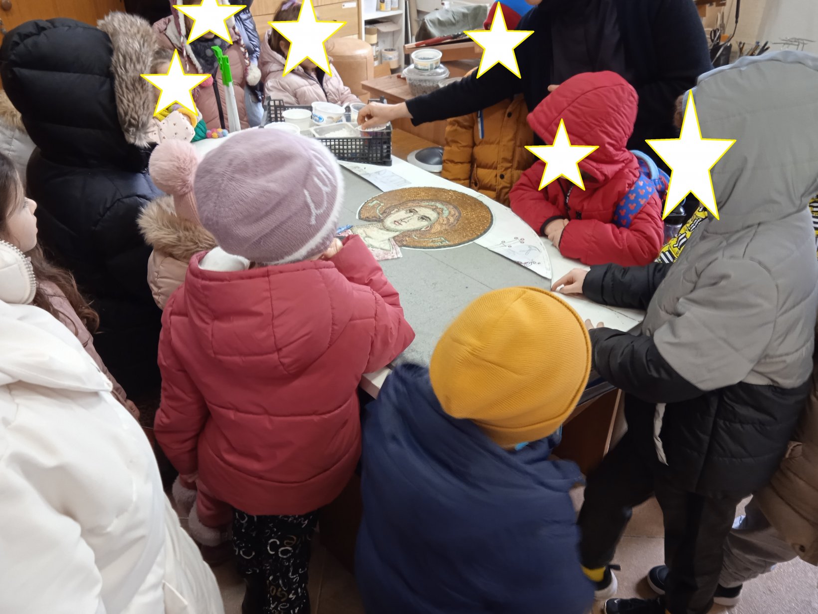 Οι “αγαπητές αδελφές” ακούραστες και πρόθυμες μας ξενάγησαν στα εργαστήρια αγιογραφίας και ψηφιδωτών