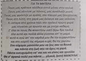 Χρόνια πολλά σε όλες τις μανούλες!!! Μαμά, μητέρα, μάνα, μανούλα, μανουλίτσα, μαμάκα. Πόσες λέξεις από το γράμμα “Μ” προκύπτουν από την ωραιότερη λέξη στον κόσμο. Ας ζωγραφίσουμε, λοιπόν, μια ζωγραφιά για τη μαμά μας, ας της δώσουμε ένα λουλούδι μαζί με ένα γλυκό φιλί και μια ζεστή αγκαλιά.