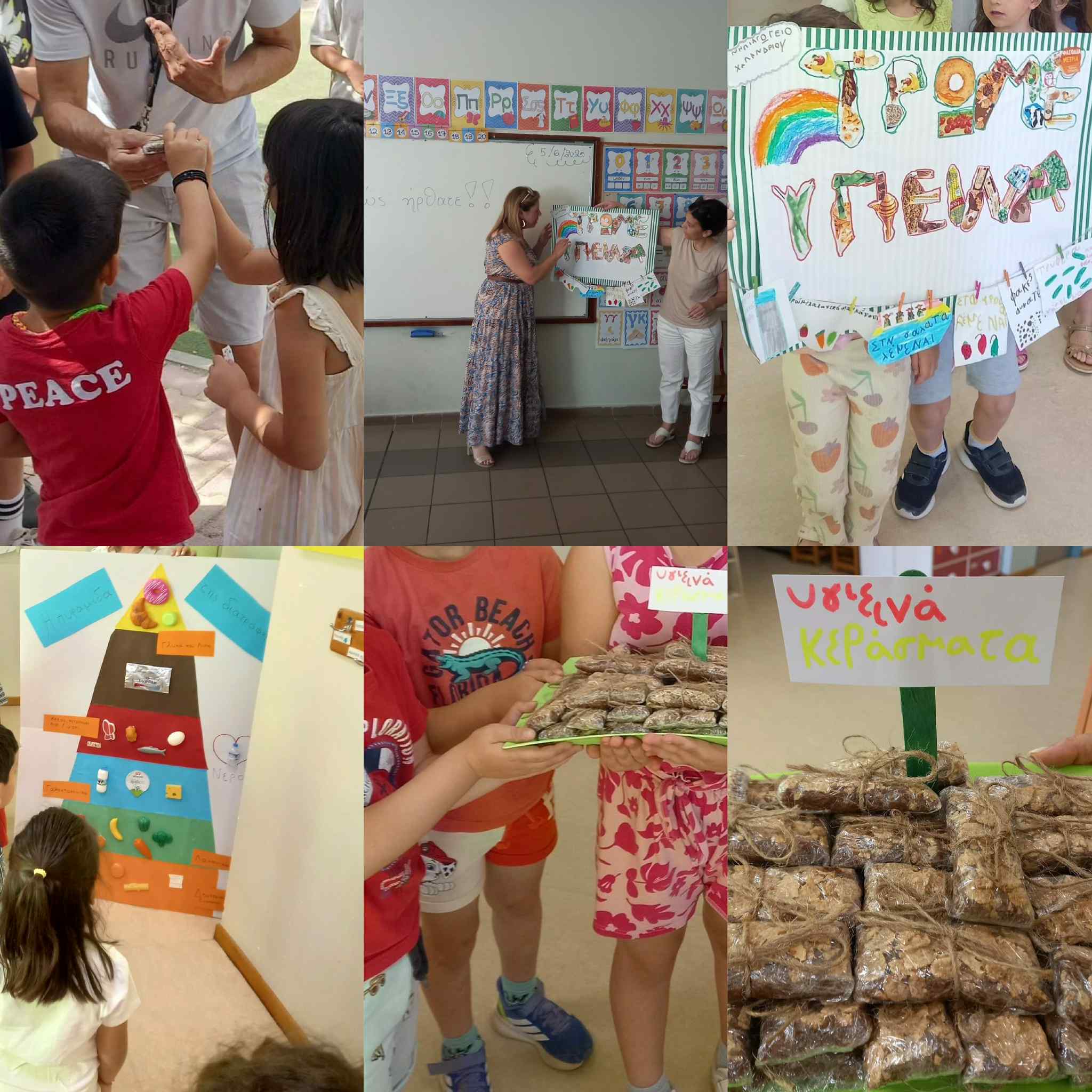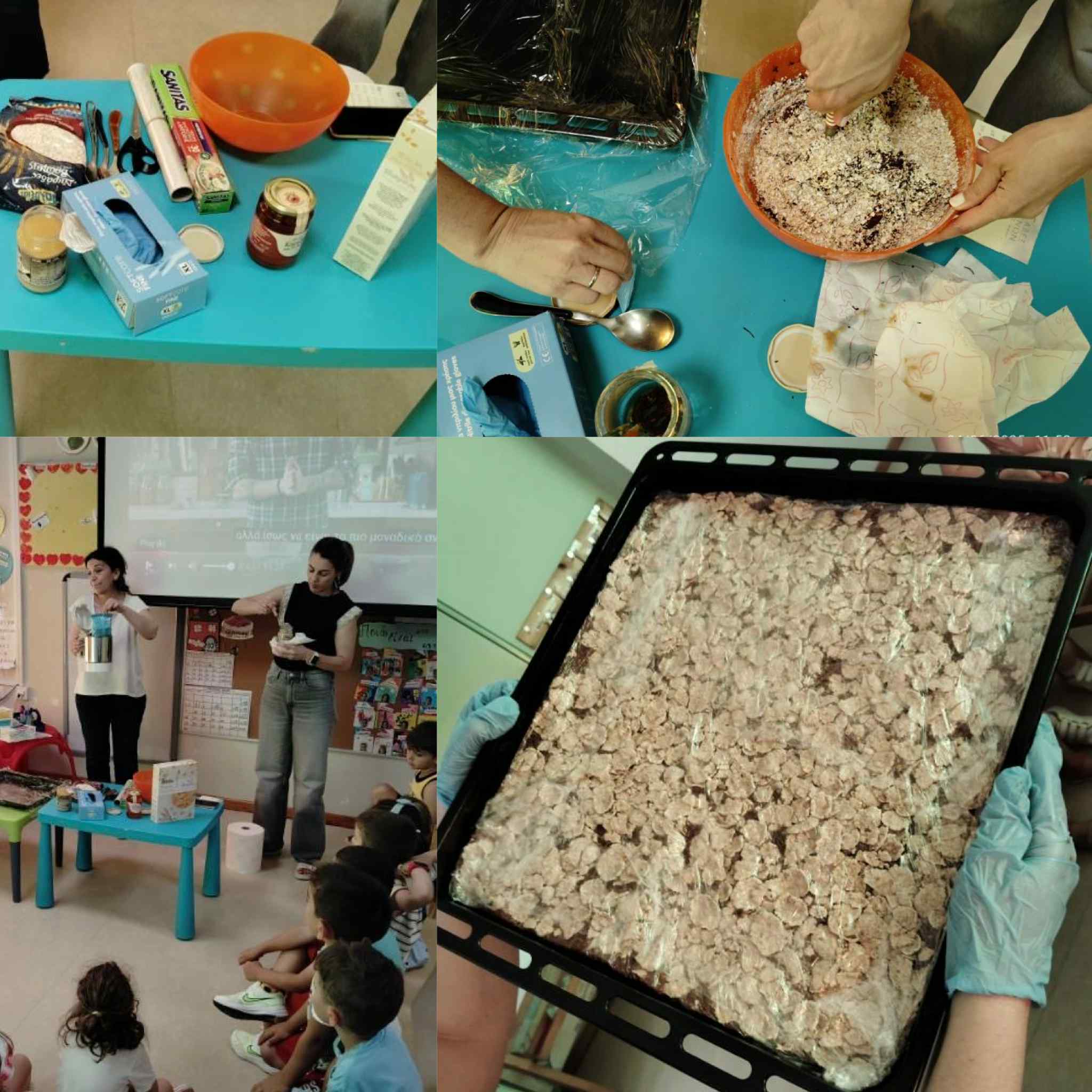 Με αφορμή το Εργαστήριο Δεξιοτήτων “Οι ντετέκτιβ ανακαλύπτουν το μυστικό για σώμα γερό και δυνατό” και στο πλαίσιο των δράσεων Ενεργού Πολίτη, οι μικροί μας μαθητές ετοίμασαν υγιεινές μπάρες δημητριακών. Στη συνέχεια, επισκέφθηκαν το δημοτικό σχολείο με σκοπό να προσφέρουν στους μαθητές της Α’ Δημοτικού τα υγιεινά κεράσματα, προβάλλοντας tips για υγιεινές διατροφικές συνήθειες.