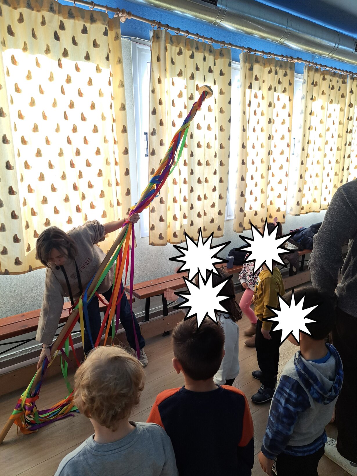 Στο δεύτερο μέρος τα παιδιά με την ιδιαίτερη εμψύχωση της κ. Αρμπελιά χόρεψαν παραδοσιακά αποκριάτικα τραγούδια, γνώρισαν το «Γαϊτανάκι» και έπαιξαν και χόρεψαν με τα νταούλια.